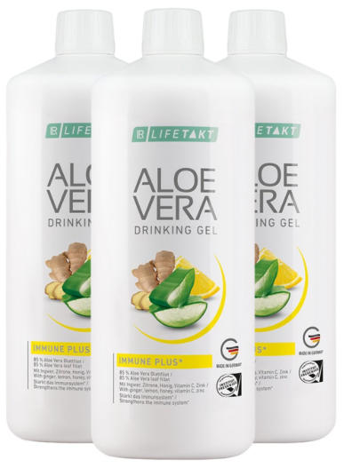 Aloe Vera Drinking Gel Immune Plus Jetzt 44,68 € -10% oder 20%Artikelnummer: 81000-1 1000.00 ml  3 * Aloe Vera Drinking Gel Immune Plus Jetzt 123,89 €  -10% oder 20%Artikelnummer: 81000-1 3 * 1000.00 ml Flüssiges Nahrungsergänzungsmittel mit Vitamin C, Zink und Selen      Das 3- fach Plus für dein Immunsyste 85% reines Aloe Vera Blattfilet angereichert mit Ingwer, Zitrone und Honig     Mit den Immunboostern Vitamin C, Zink und Selen1 Herausragende Qualität – made in Germany  ALOE VERA Immune PLUS